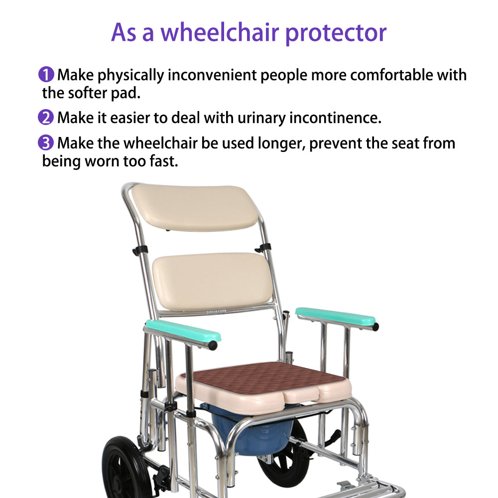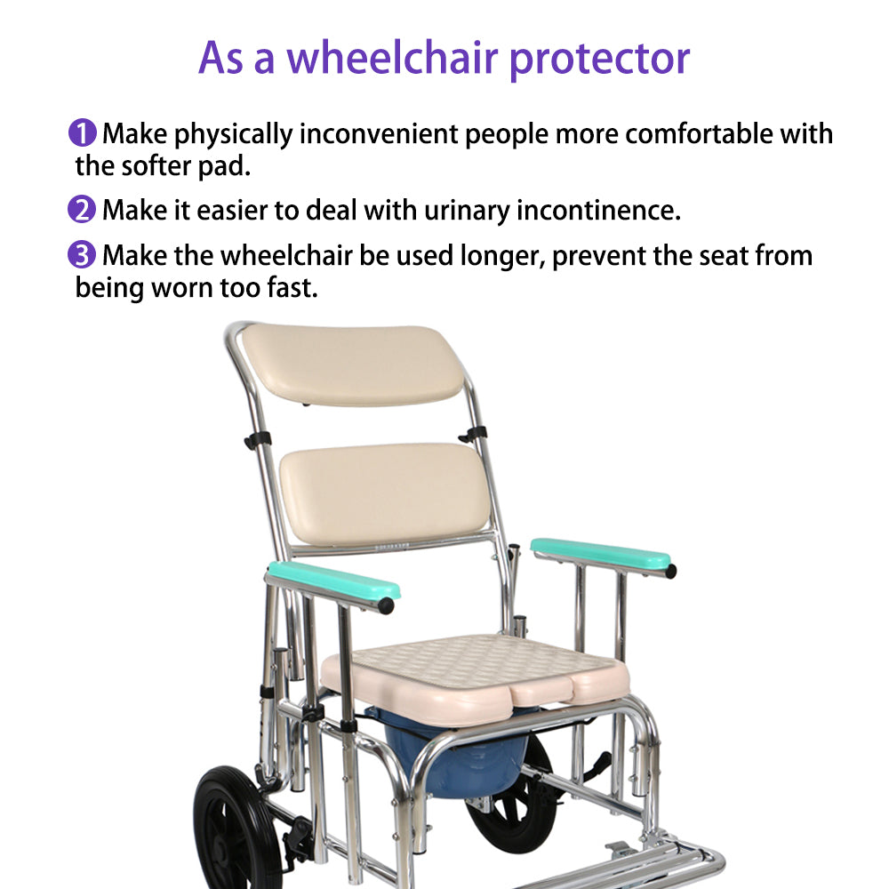 Placed on wheelchairs, it provides comfort and cleanliness for elderly individuals with urinary incontinence, greatly simplifying cleaning, saving time and effort, protecting the wheelchair itself, and extending its lifespan.